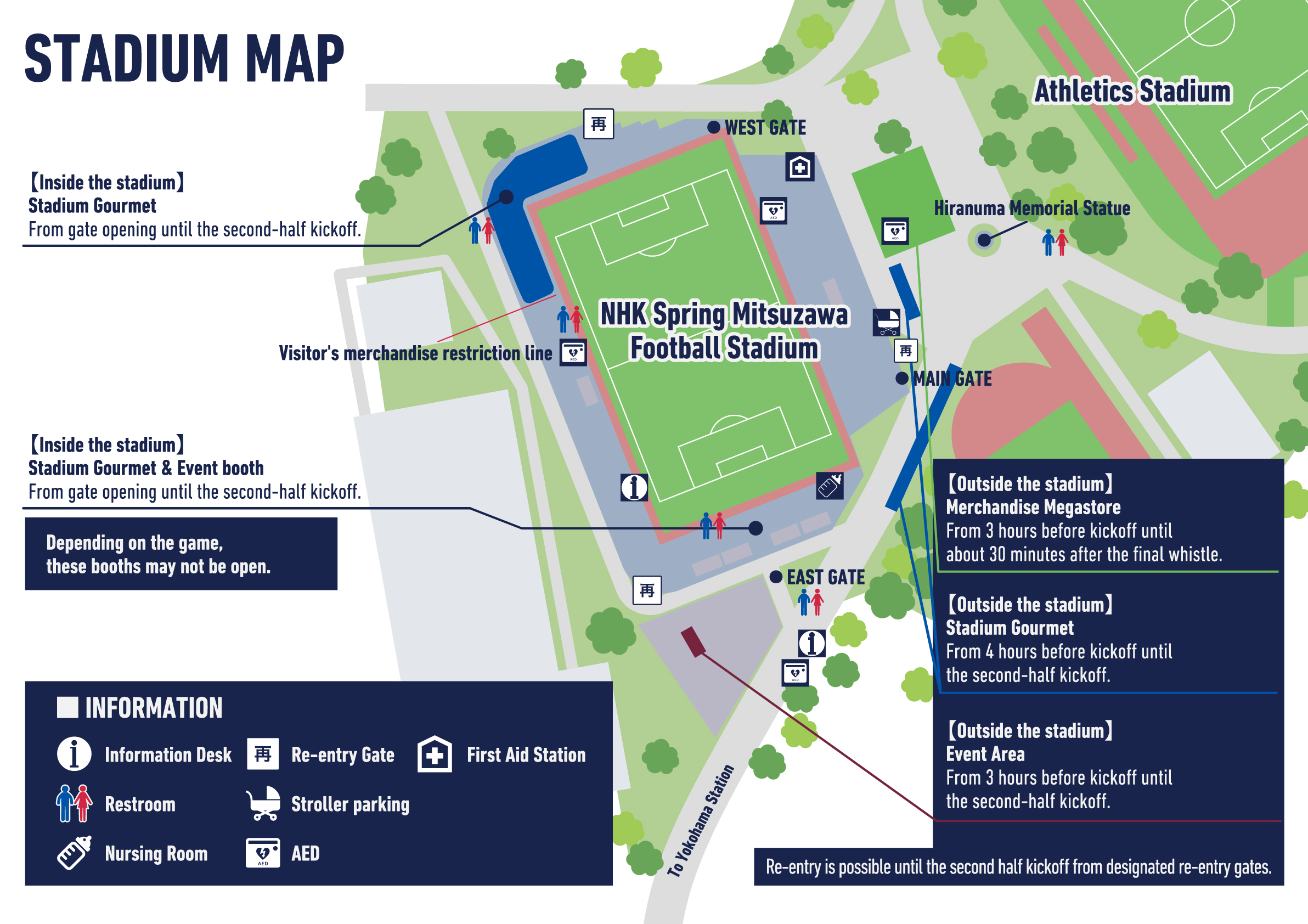 YOKOHAMA FC merchandise megastore opens outside the stadium. Open until 15 minutes after the match ends.