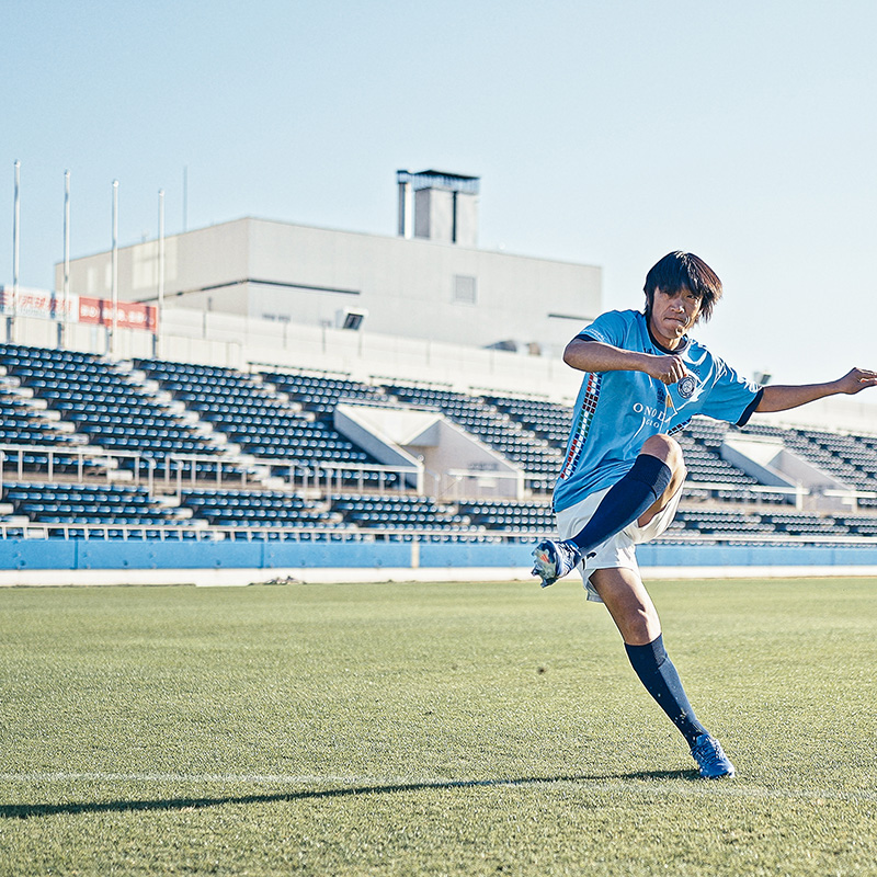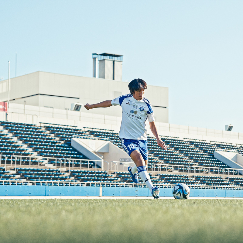 日本代表で共にプレーした戦友たちで構成された「J-DREAMS」の着用ユニフォーム。両肩に付すブルーは、日の丸の10番として長年責任を持ちピッチへ立った、中村俊輔氏の日本代表への想いを表現。日本の10番が13年振りにその想いと共にユニフォームを纏う。