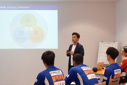 また、若年層選手(対象選手)においては、他者依存感覚を捨て、自らで考え、自らで行動するための『自己学習能力』や、常に目標を持って、その目標に向かって計画、検証しながら進んでいけるような『目標設定思考力』の醸成を目的とし、クラブ内の各担当者、担当内容によってはゲストスピーカを招聘し、より多角的な講座計画を実践していきます。