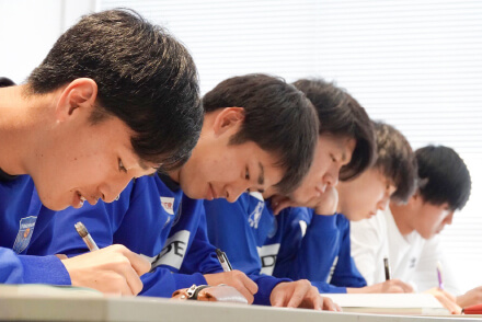 横浜 FC の選手として、プロサッカー選手として、そして一社会人として、必要な情報や知識、 コミュニケーションスキルを身に付けることにより、プロサッカー選手としてはもちろん、 人としての価値を高めることになります。自らで考え、行動することは、横浜 FC が掲げる フィロソフィとも合致し、クラブバリューのひとつでもある「発展」につながります。