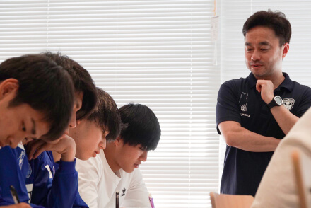 横浜FCでは『教育』をキーワードに、選手たちと共に、クラブ内において半学半教の精神の基、互いに学びあえる教育環境の定着を目指します。