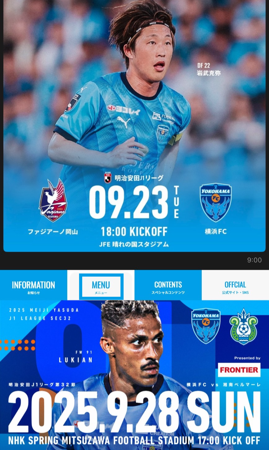 横浜FCを選択し「次へ」を押す