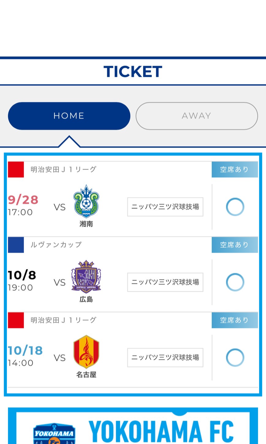 横浜FCではJリーグ公式チケット販売サイト「Jリーグチケット」でチケットを販売しています。