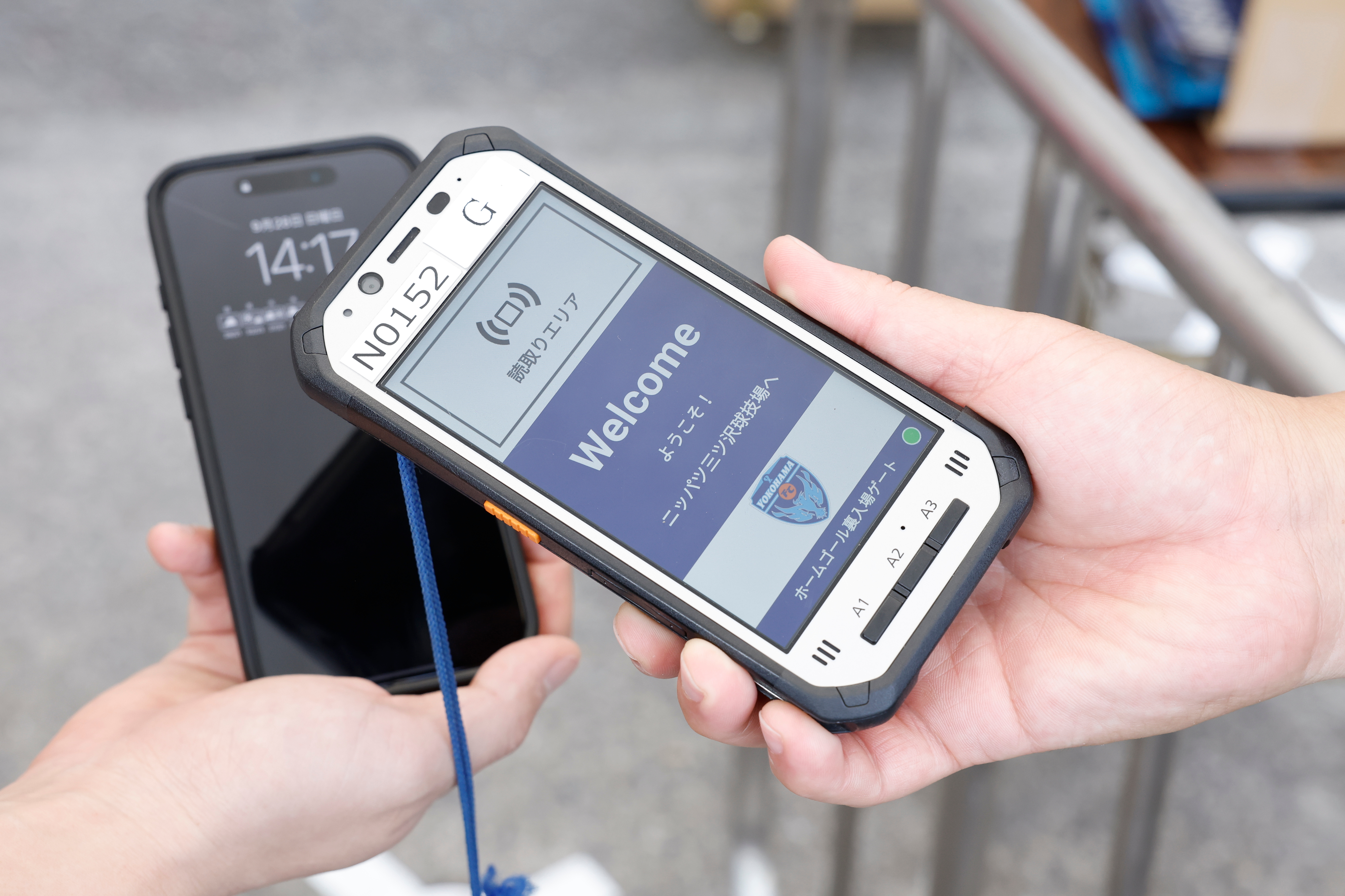 試合当日に入場ゲートでチケット認証端末にQRコードをかざして入場完了!