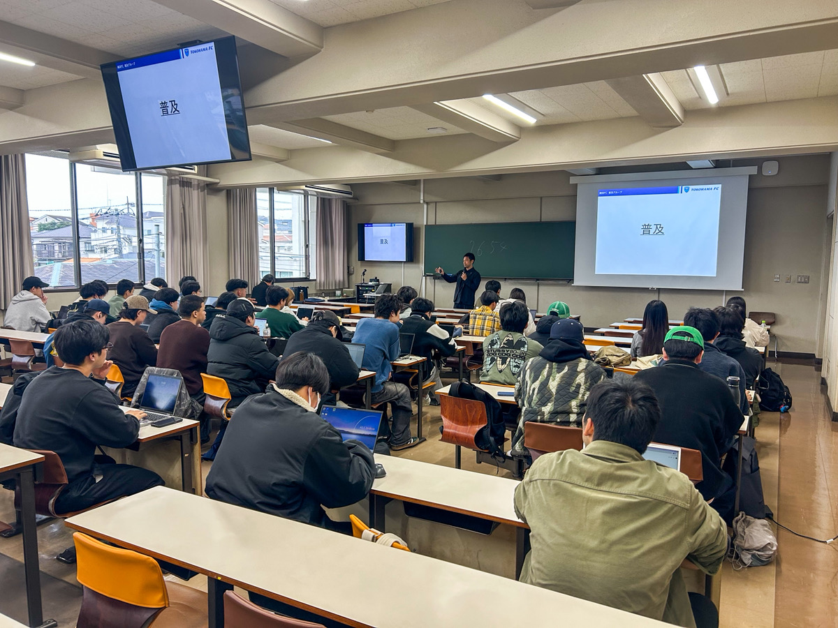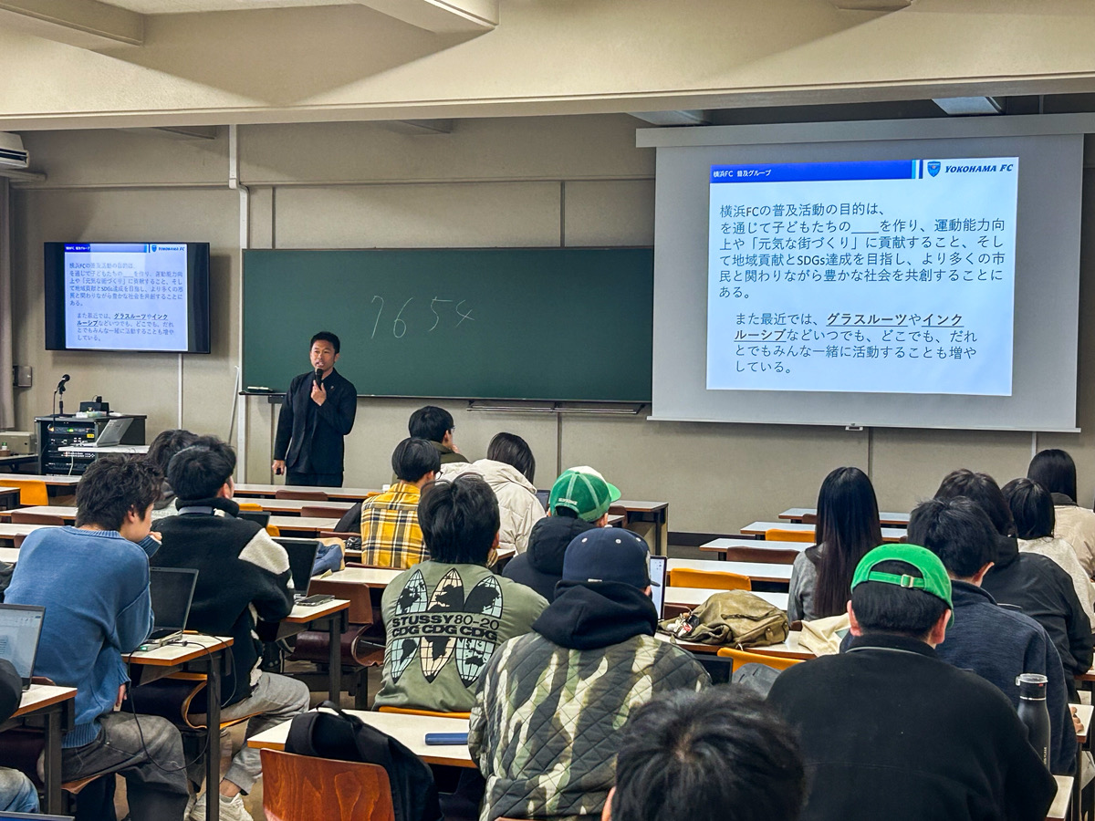 横浜商科大学にて、横浜FCの普及ダイレクター鯨井健太が講師として登壇し、「ホームタウン活動」および「普及活動」をテーマにした特別講義を行いました!