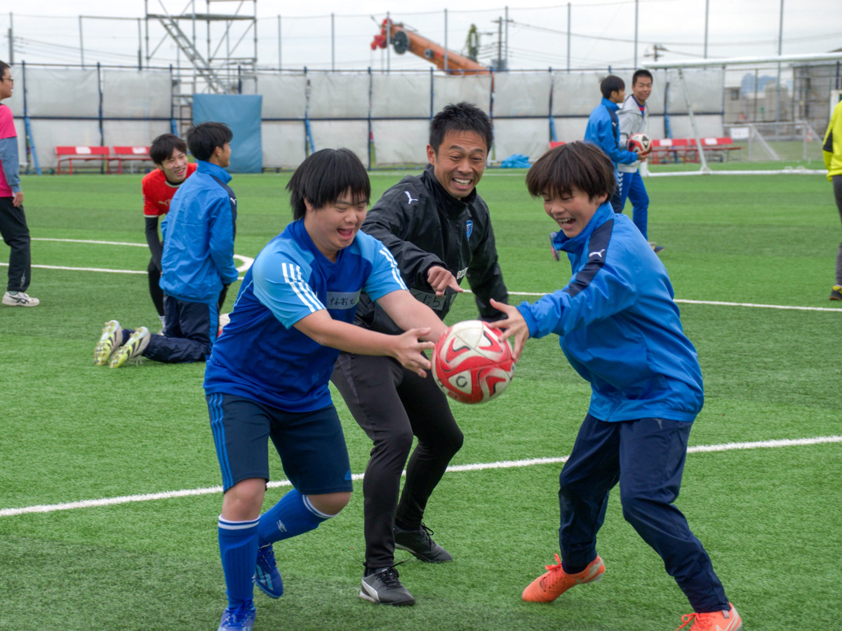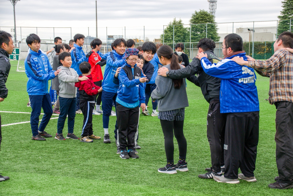 本番の会場と同じ横浜FC・LEOCトレーニングセンターで行われ、横浜FCJrユースの選手も参加しました。初めはお互いにぎこちない様子でしたが、ボールを持つと今までの緊張がなかったかのように、年齢や性別、障がいの有無に関わらず全員が一緒にサッカーを楽しんでいました!