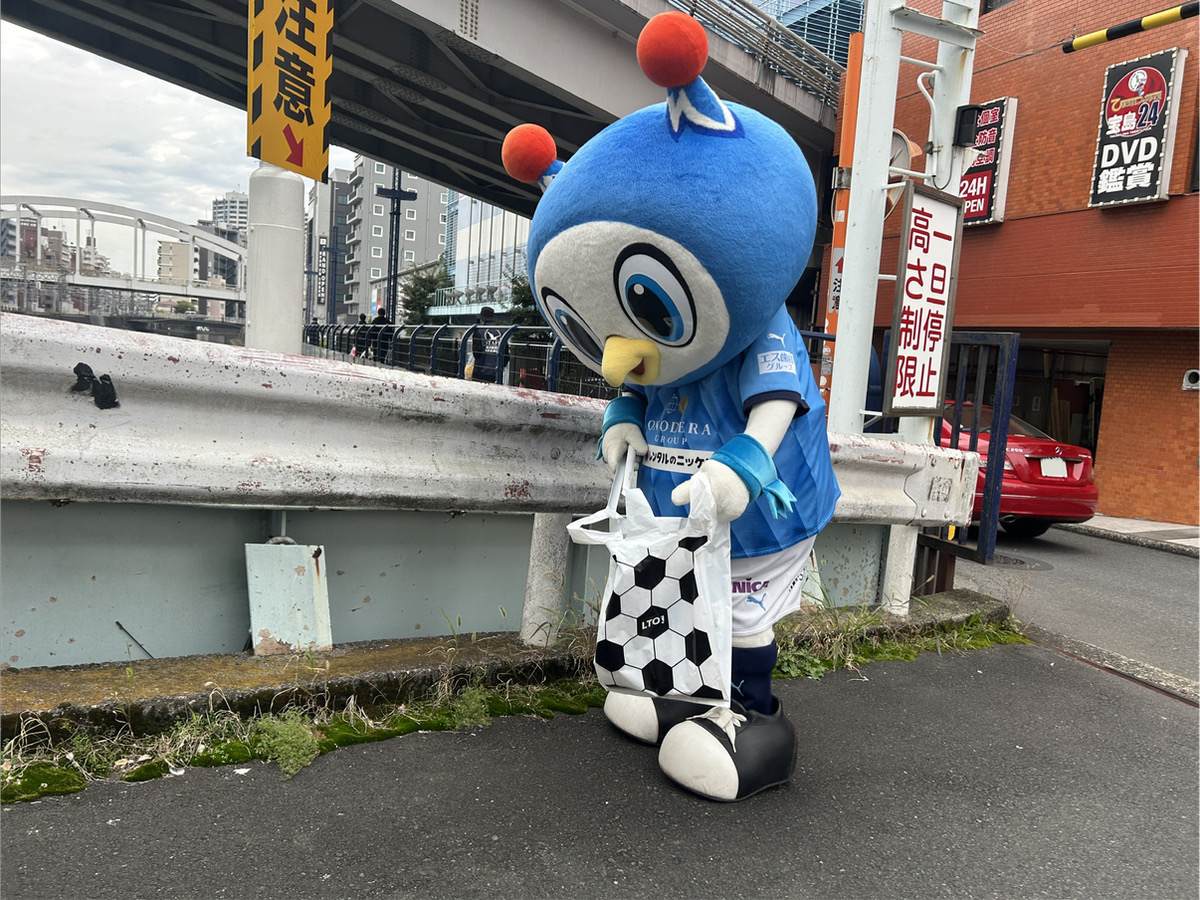 相模鉄道株式会社主催の清掃・パトロール活動にLTO活動として横浜FCも参加させていただき、横浜駅西口エリアの清掃を行いました。実施にあたり、フリ丸とクラブスタッフが参加し横浜平沼高校の皆さんと一緒にゴミ拾いとゴミの分別をしながら、環境への意識を高めました。エリアの中でも駅方面は落ちているゴミの量が多く、特にタバコの吸い殻や空箱は、生徒の皆さんが「タバコが多すぎる」、「燃えるゴミの袋の中が、ほぼタバコでした」と口にするほど多かった印象です。街中で一生懸命活動に取り組む高校生の姿は、1人でも多くの方々に好影響を与えたのではないかと思います。