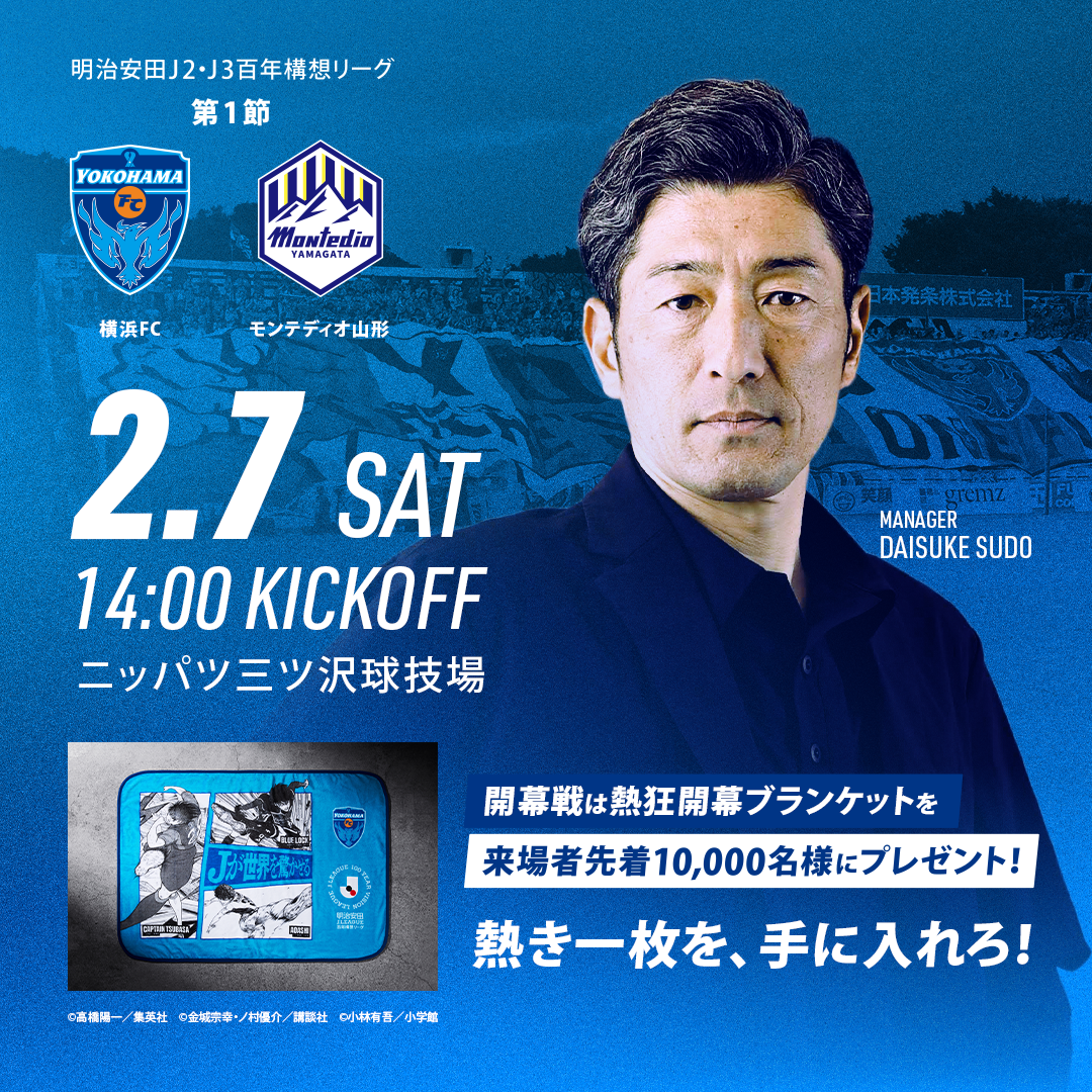 2月7日(土)明治安田J2・J3百年構想リーグ 第1節 モンテディオ山形戦(ニッパツ三ツ沢球技場/14:00KICKOFF)の試合特設ページを更新!