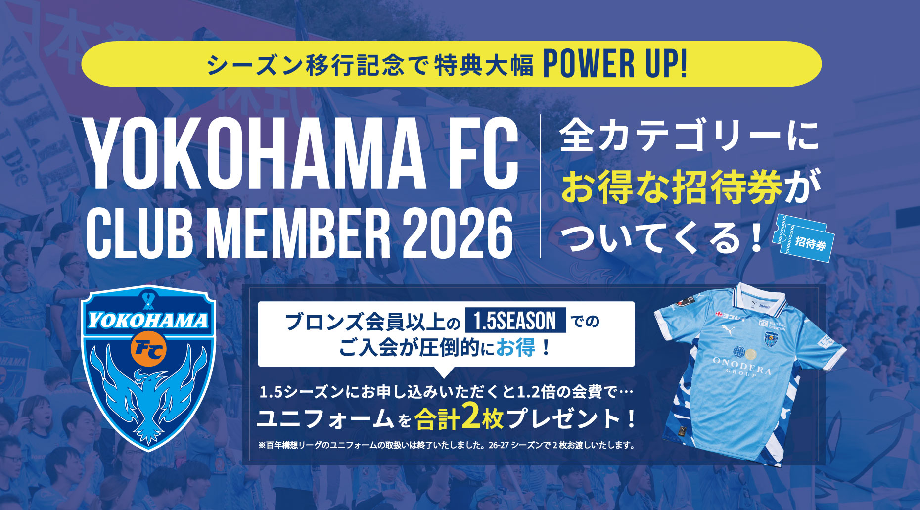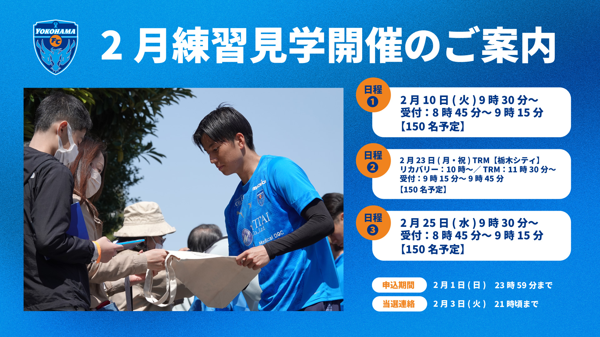 ②「マイページ>MENU>お知らせ」の『【横浜FC】2026年2月 トップチーム練習見学開催のお知らせ』に記載されているURLよりお申し込みいただけます。