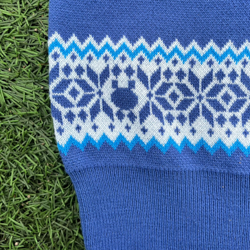 伝統的なノルディック柄をベースに、横浜FCらしさをふんだんに詰め込んだ特別な一着に仕上げました。