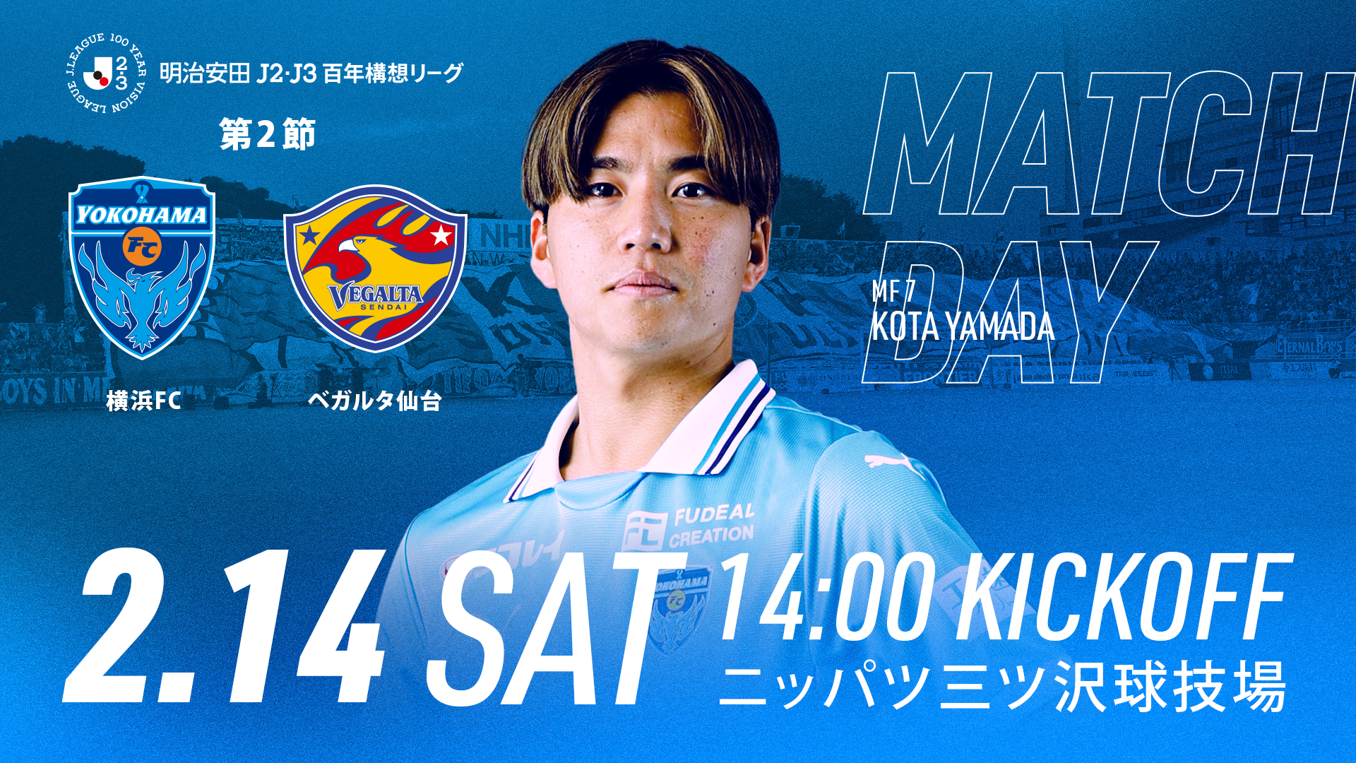 2月14日(土)明治安田J2・J3百年構想リーグ 第2節 ベガルタ仙台戦(ニッパツ三ツ沢球技場/14:00KICKOFF)のグッズ情報をお知らせします。