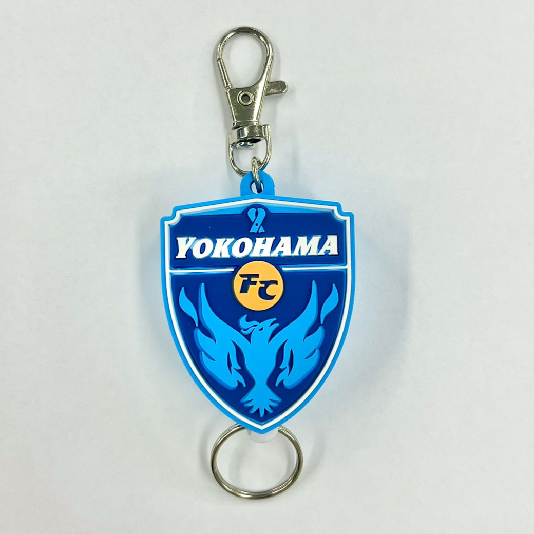 横浜FCのエンブレム型のラバーリールキーホルダー!先端のリングが伸びるので鍵やパスケースとの相性抜群!お気に入りのキーホルダーをまとめて付けるのもおすすめです!