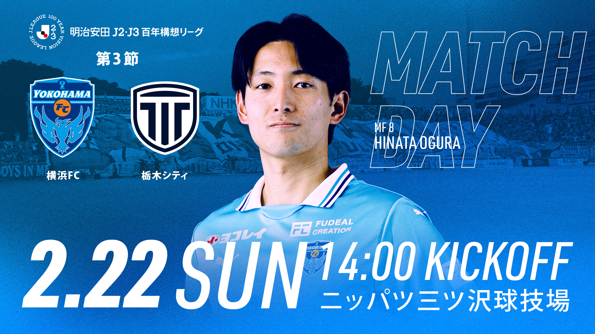 2月22日(日)明治安田J2・J3百年構想リーグ 第3節 栃木シティ戦(ニッパツ三ツ沢球技場/14:00KICKOFF)のグッズ情報をお知らせします。