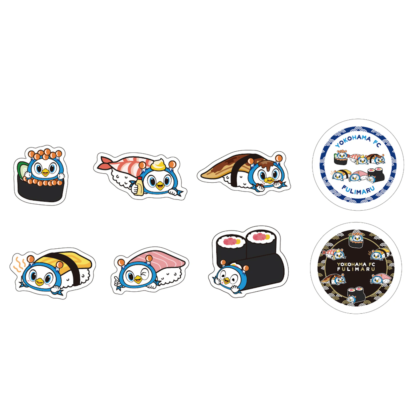 選手たちがお寿司に変身する中、フリ丸も負けじと美味しそうなお寿司に変身したステッカー!コンプリートしたくなる可愛さです!シークレットでの販売なのでどれが当たるかは開けてからのお楽しみ!