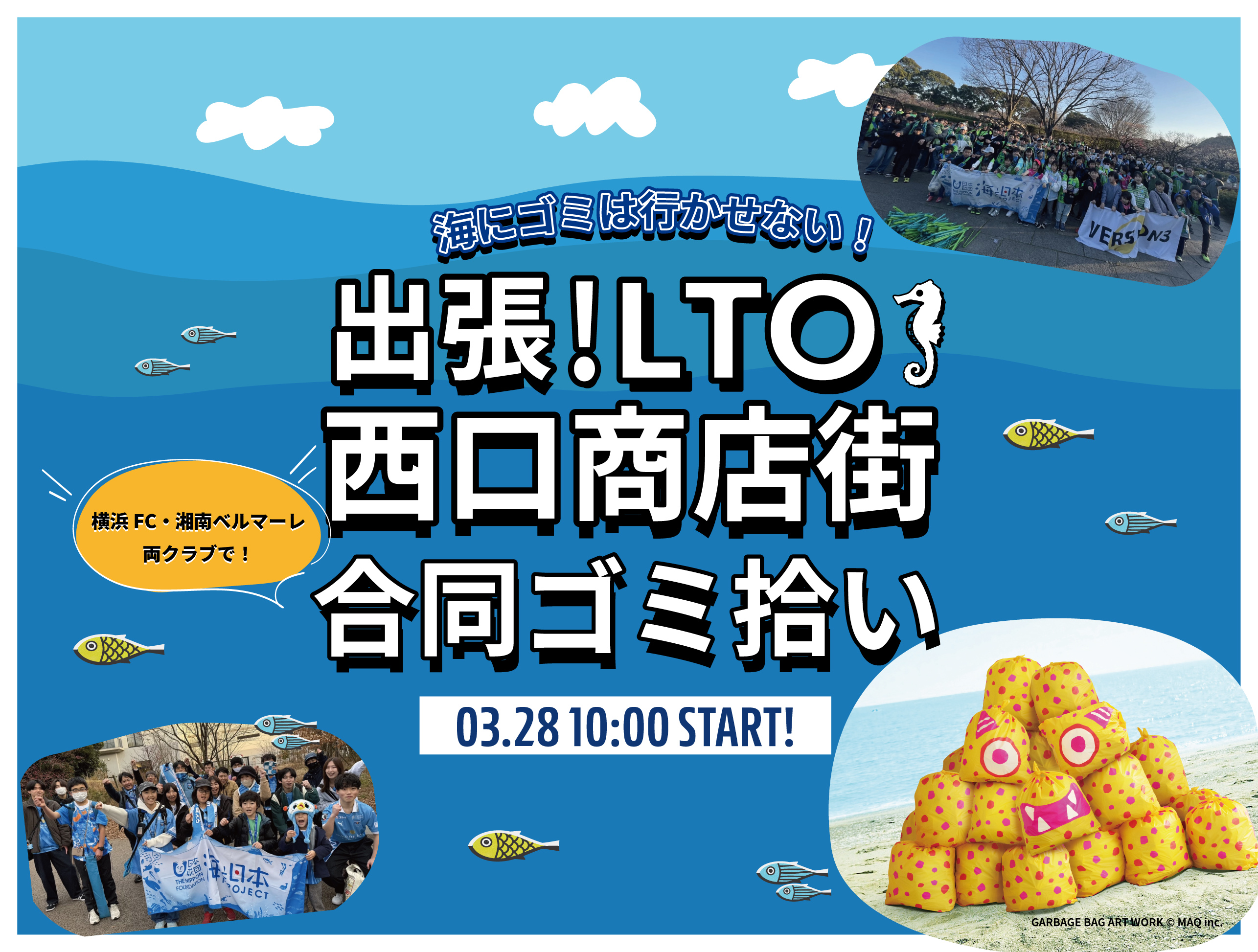 横浜FCと湘南ベルマーレの両クラブサポーター合同でゴミ拾い活動を行います。