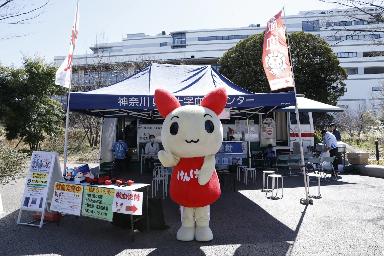 ブースには、お馴染みとなった「けんけつちゃん」も駆けつけ、ブースPRのお手伝いをしてくれました!