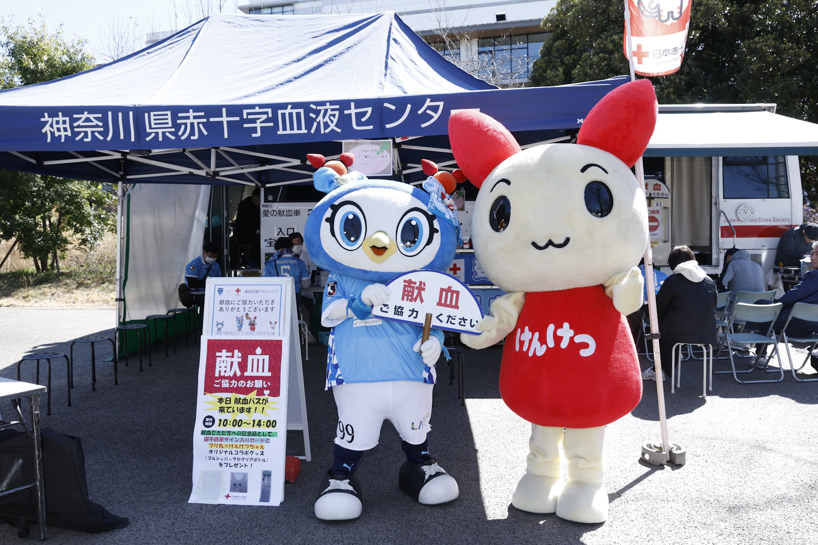 今節はスタジアムに献血バスが登場!献血へのご協力呼びかけや啓発活動を行いました。