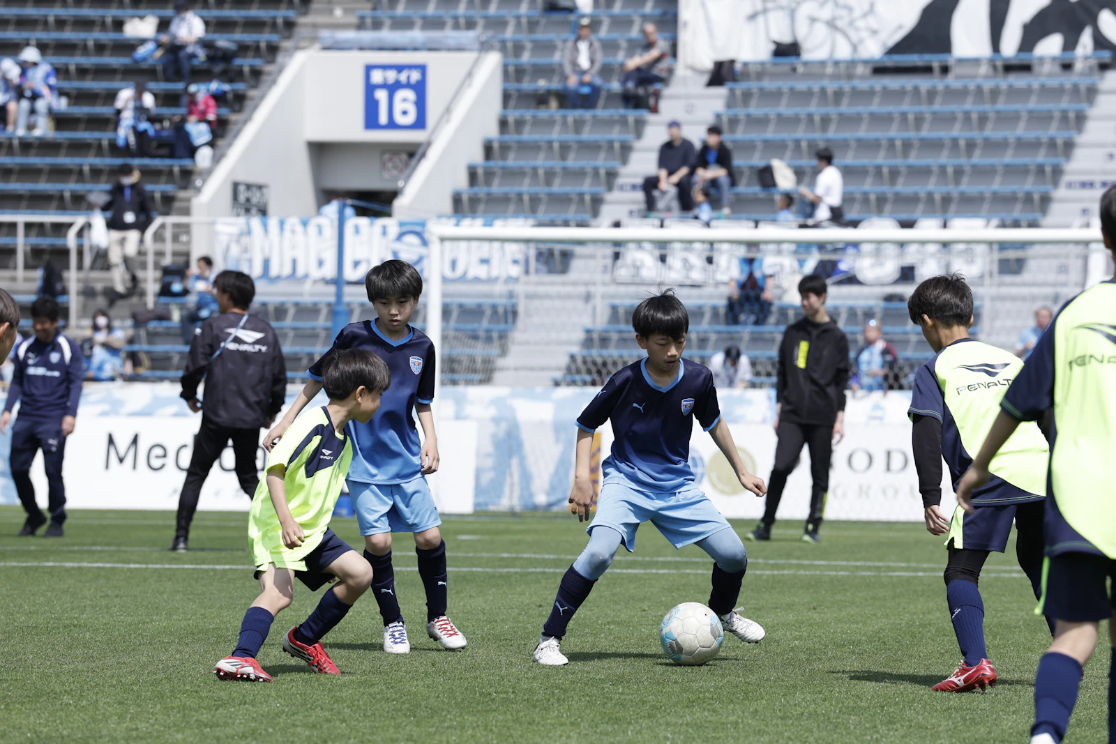 トップチームの試合が行われる前の三ツ沢のピッチで、前座試合を開催しています。