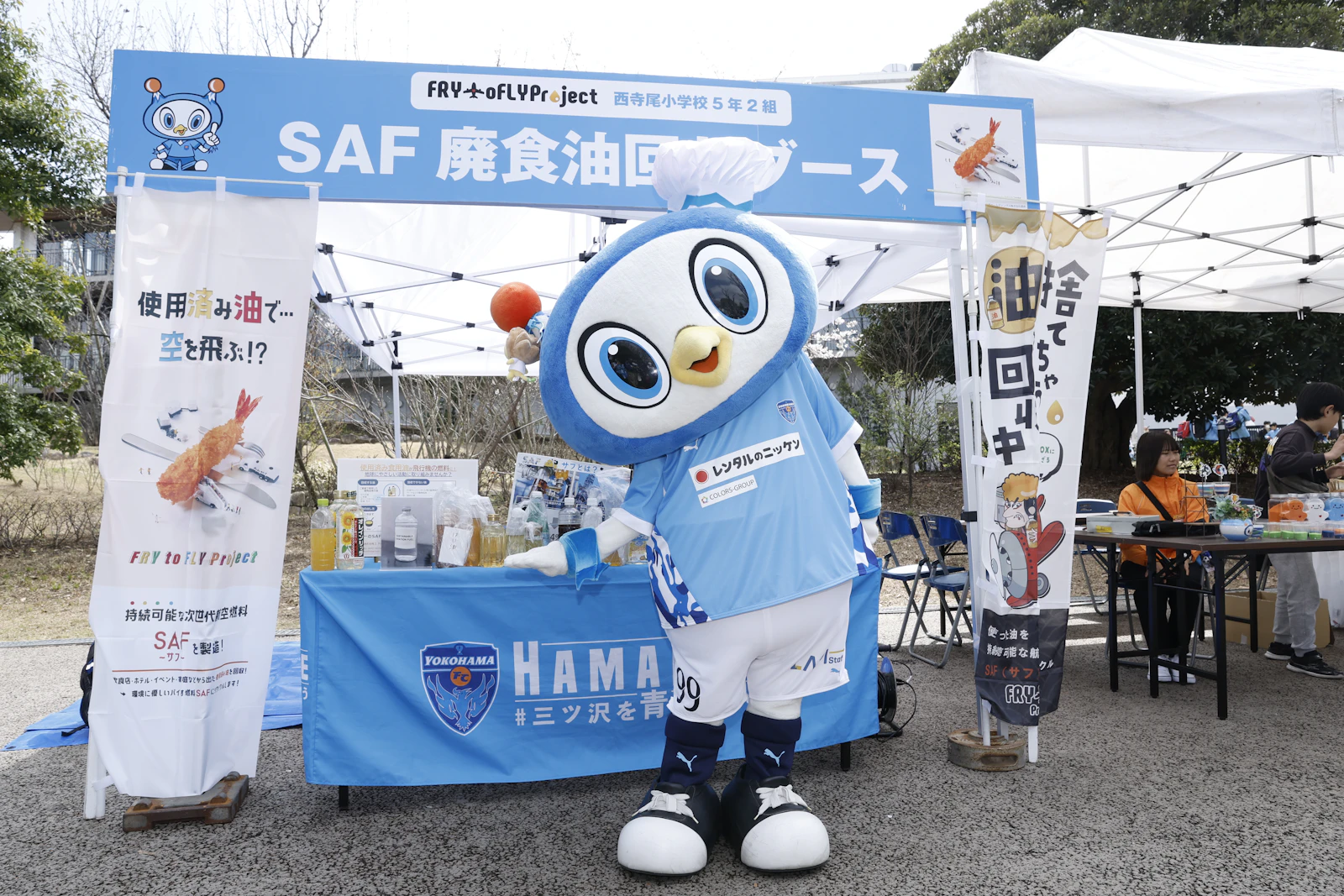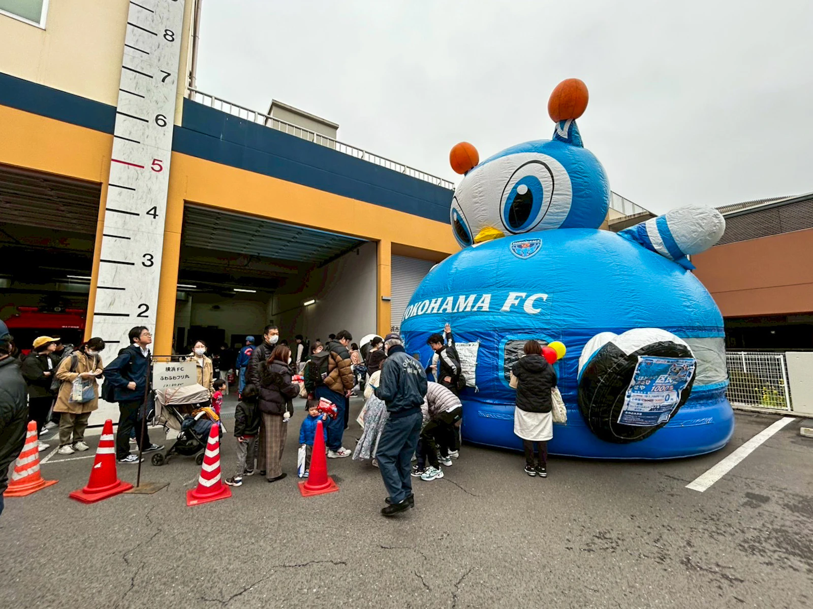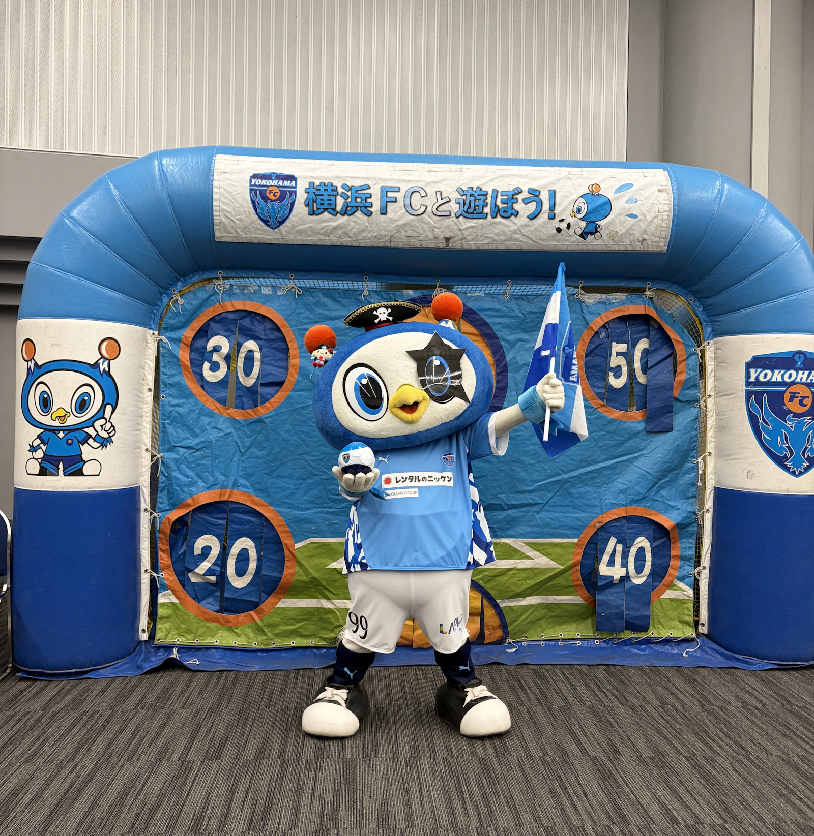 当日はフリ丸も駆けつけ、横浜FCブースではお馴染みのキックターゲットを実施!お子様をはじめ、多くの来場者の皆さまに体験していただきました。また、フリ丸は他クラブのマスコットのお友達と一緒に会場を巡回し、イベントを盛り上げました。