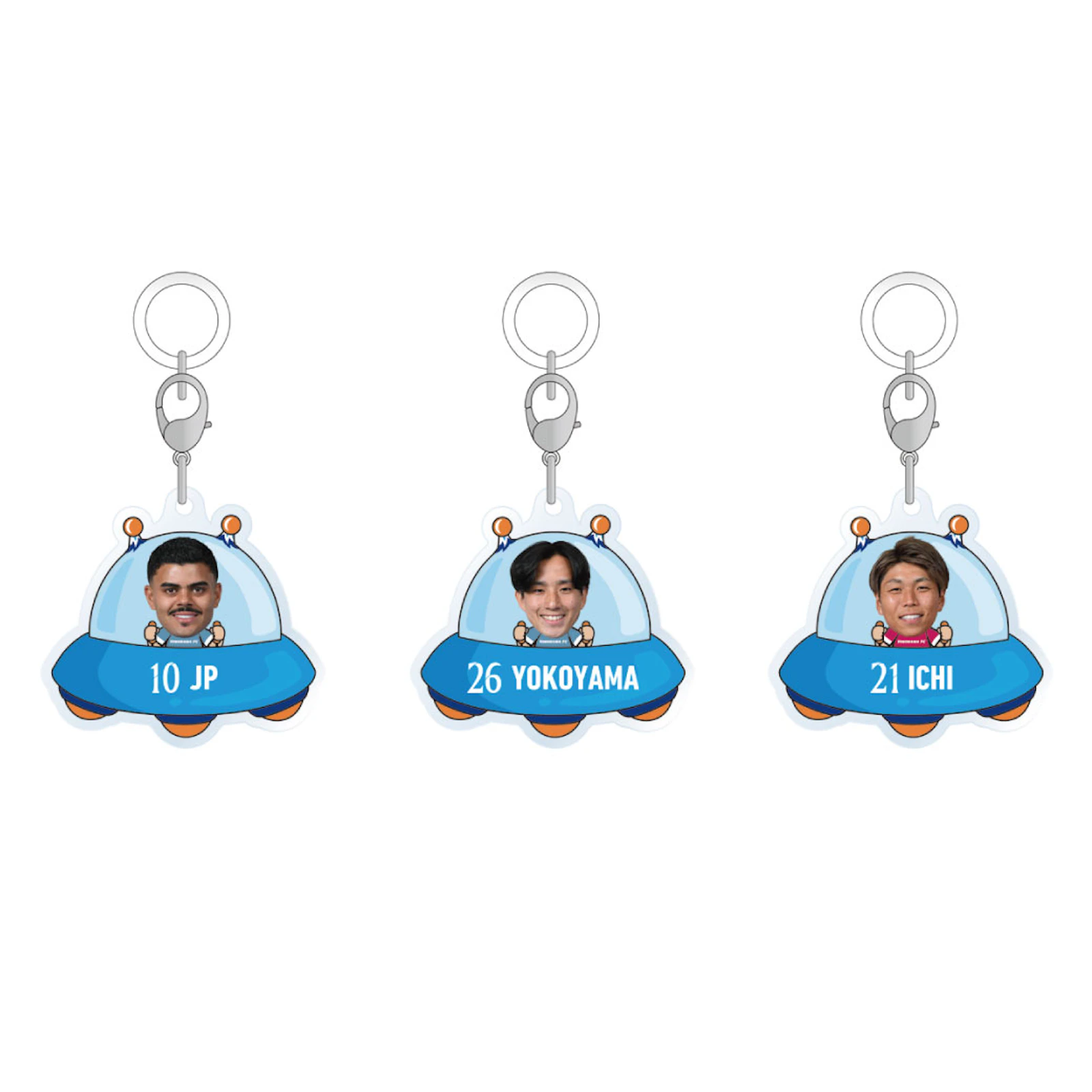 フリ丸UFOに乗った選手たちのめじるしチャーム!傘やペットボトルに付けたり、リップやペンライトにも付けたりといろいろなアレンジができます!