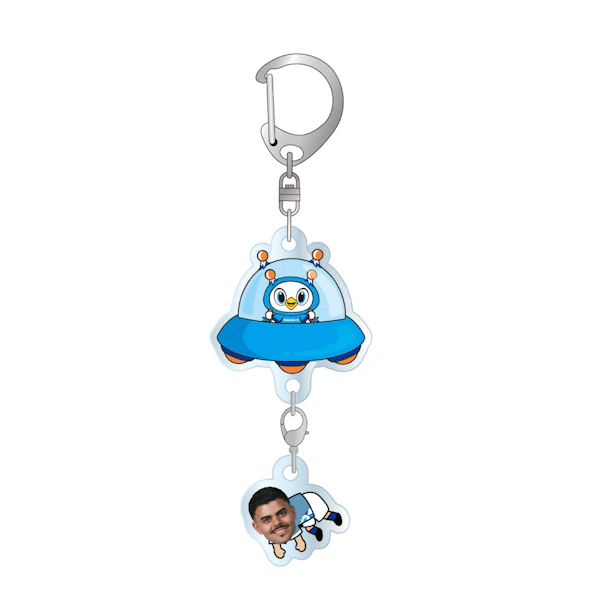 フリ丸UFOに選手が連れて行かれているようなキーホルダーです!