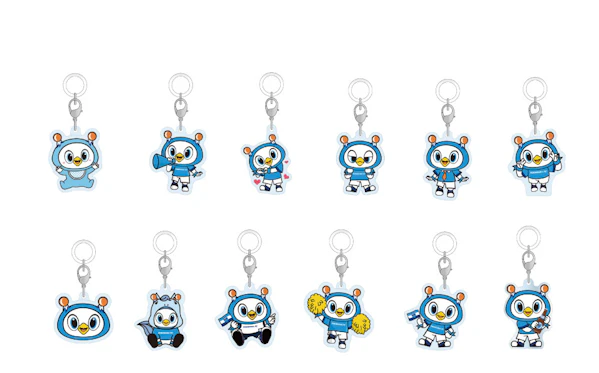 選手たちとフリ丸の写真をめじるしチャームにしました!