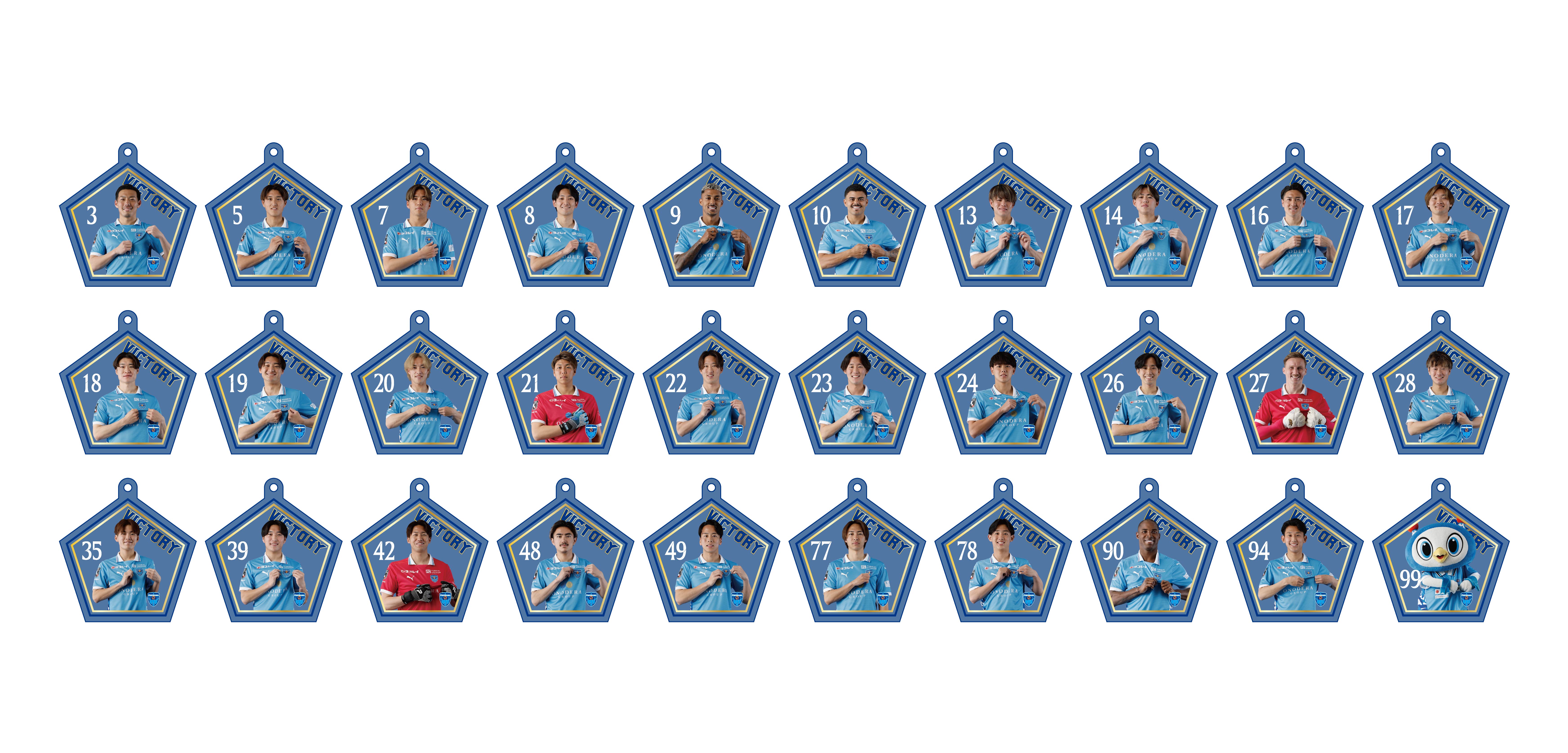 勝点3のポーズをした選手たちのペナント型のキーホルダー!