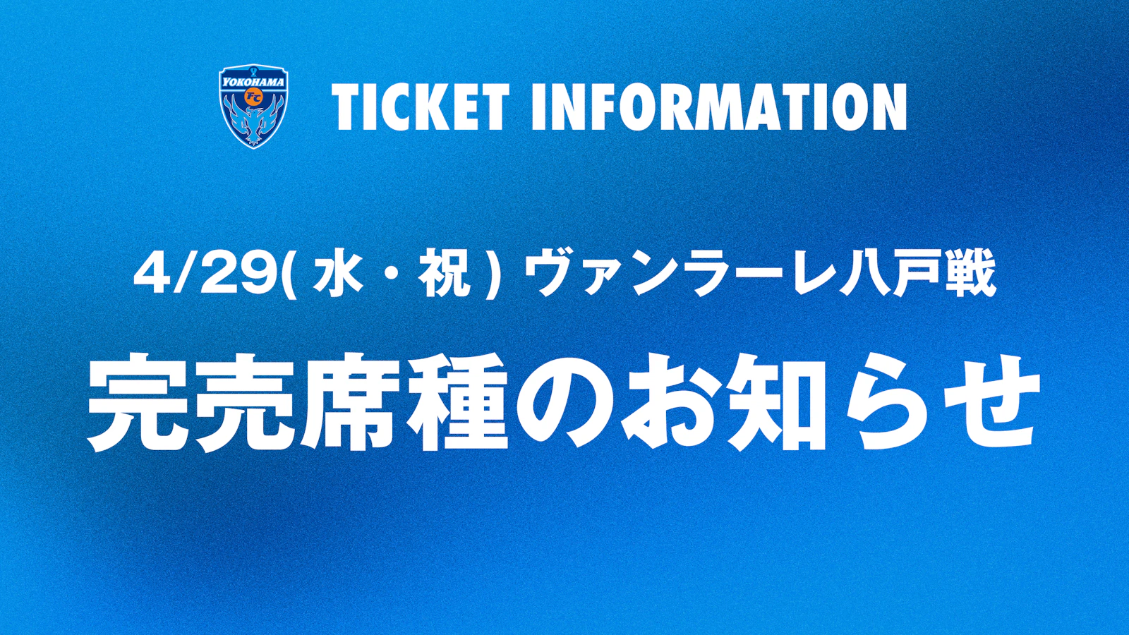 4/29(水・祝)開催の明治安田J2・J3百年構想リーグEAST-A第13節ヴァンラーレ八戸戦における、以下席種の販売予定枚数が終了(完売)しましたのでお知らせいたします。