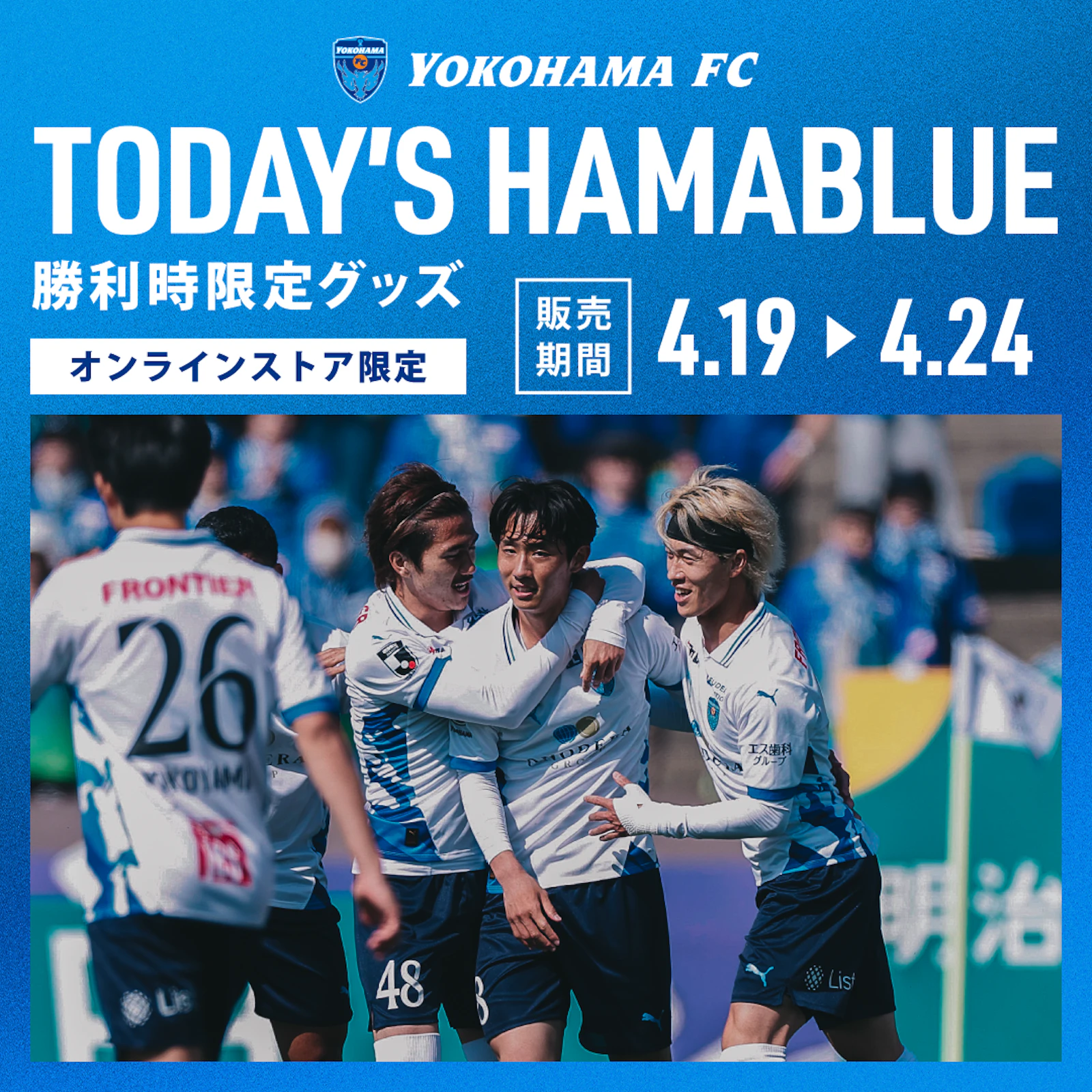 今シーズンもホームゲーム・アウェイゲームともに勝利時限定で「TODAY'S HAMABLUEグッズ」を横浜FC公式オンラインストアにて受注販売しています。