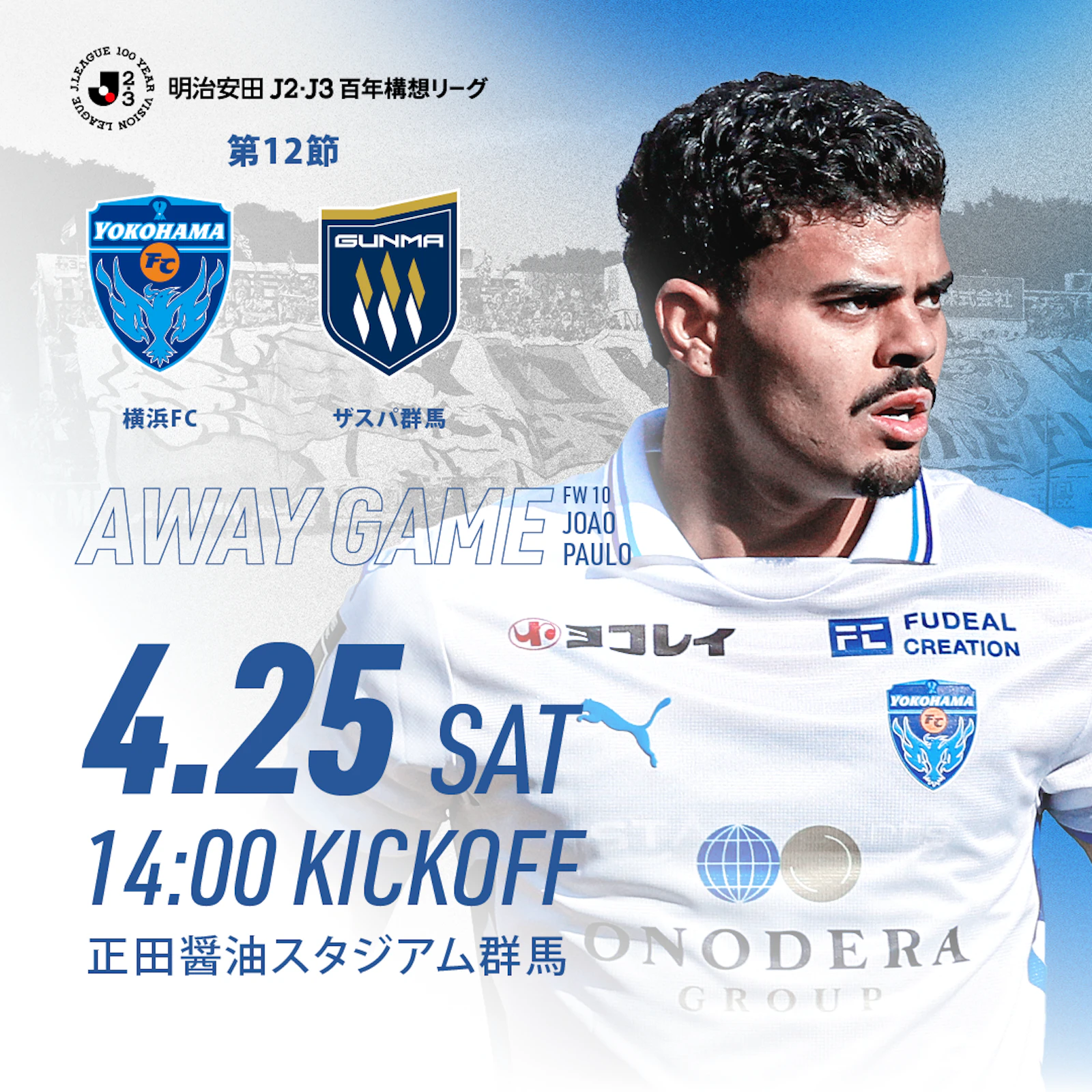 4月25日(土)に開催される「明治安田J2・J3百年構想リーグ 地域リーグラウンド 第12節 ザスパ群馬戦」の試合情報につきまして、以下の通りお知らせいたします。