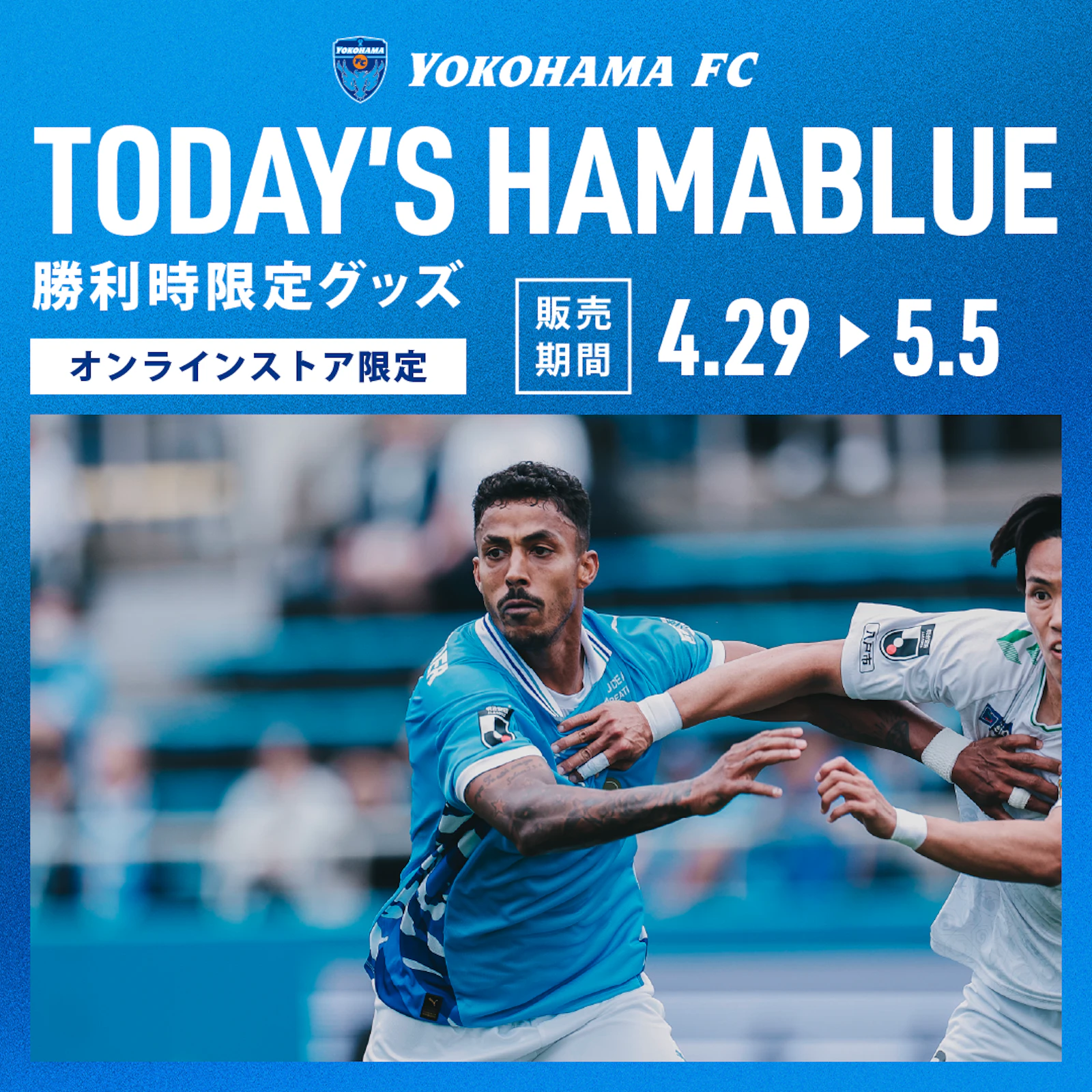 今シーズンもホームゲーム・アウェイゲームともに勝利時限定で「TODAY'S HAMABLUEグッズ」を横浜FC公式オンラインストアにて受注販売することとなりました。