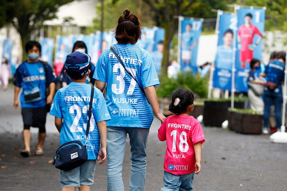 クラブカラーのHAMABLUE(空色)を着用してスタジアムを青く染めてください !