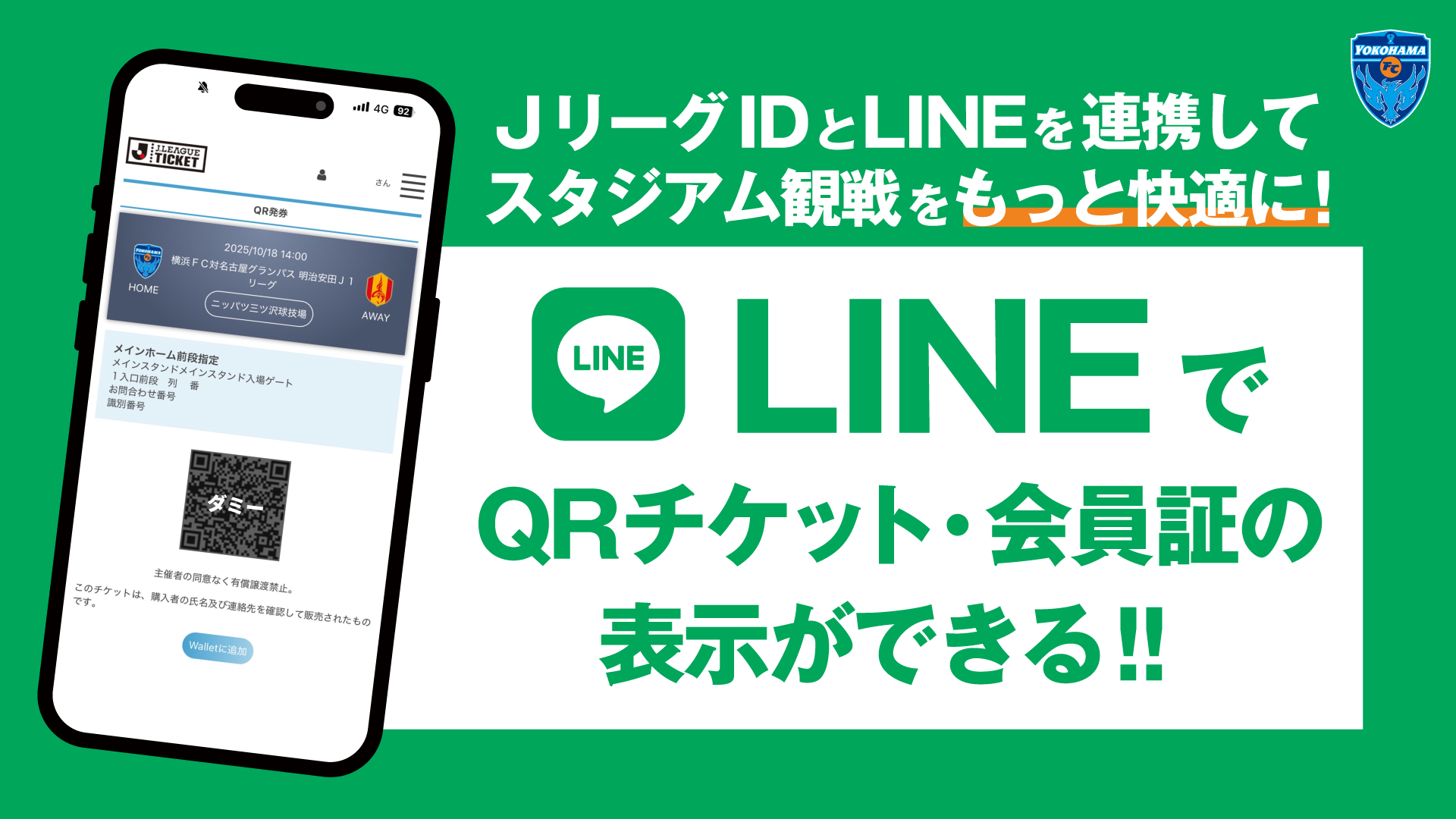 JリーグIDとLINEを連携すると、LINE上でQRチケットや会員証が簡単に表示できるなど便利に試合観戦いただけます!