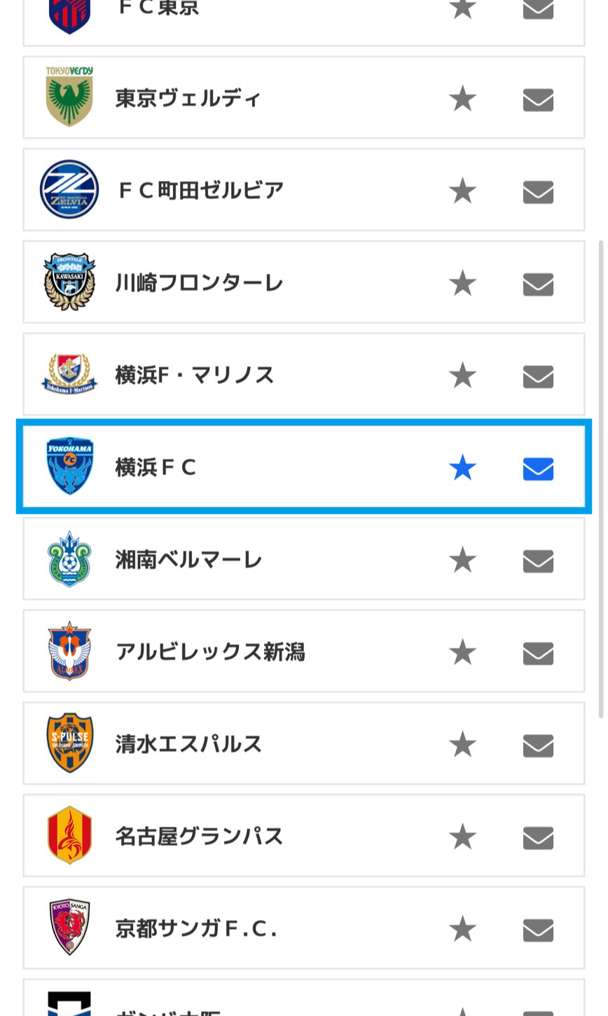 横浜FCを選択し「次へ」を押す