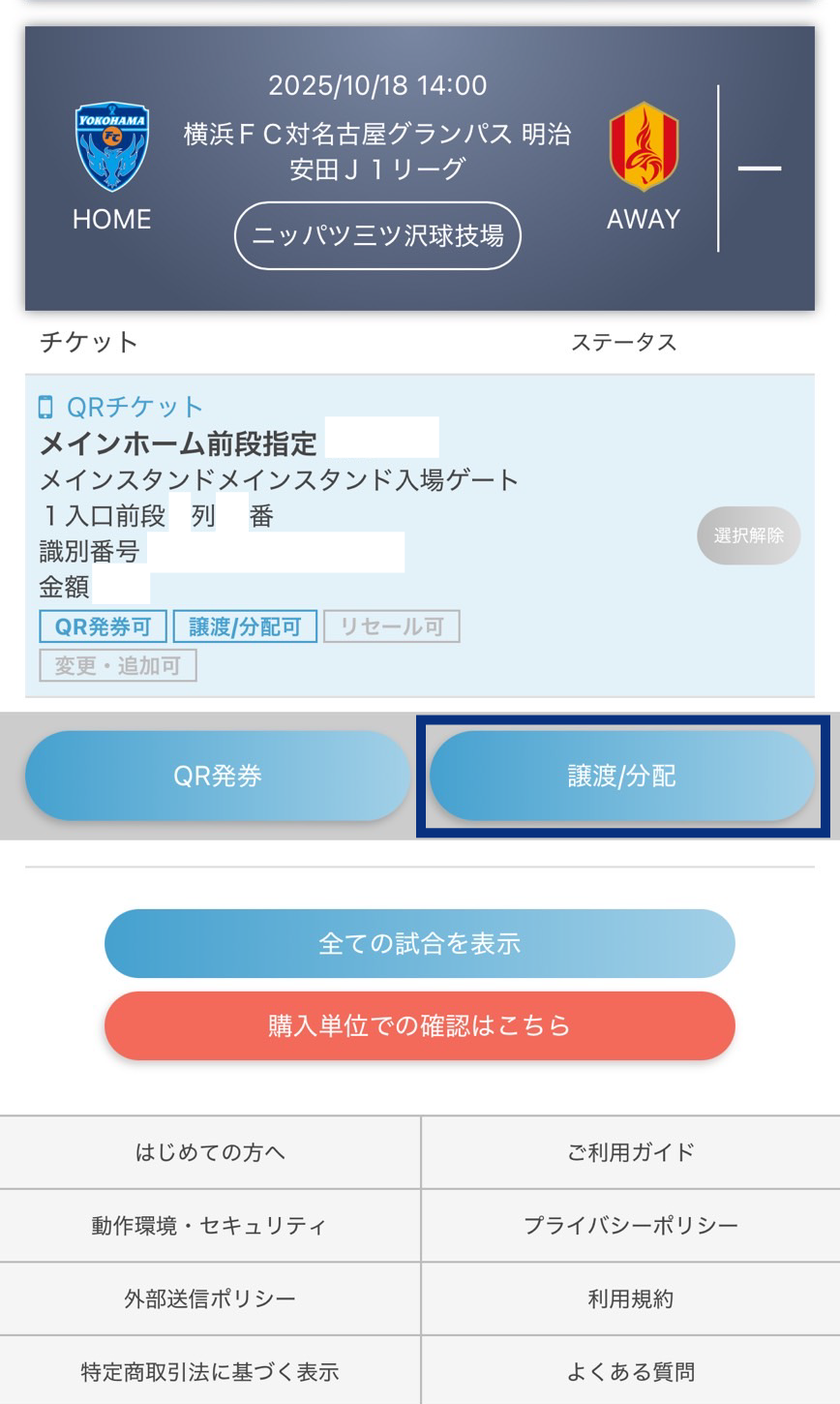 行けない試合は所定の手続きを行えばチケットを他の方に販売・譲渡することが可能です。